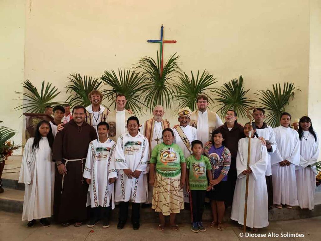Phó tế vĩnh viễn đầu tiên của những người sắc tộc Ticuna, thầy Antelmo Pereira Ângelo. Điều tò mò là, trên tay thầy Antelmo là một cuốn Kinh Thánh dành cho trẻ em bằng tiếng Ticuna mà thầy đã giúp dịch thuật (Ảnh: ACN)