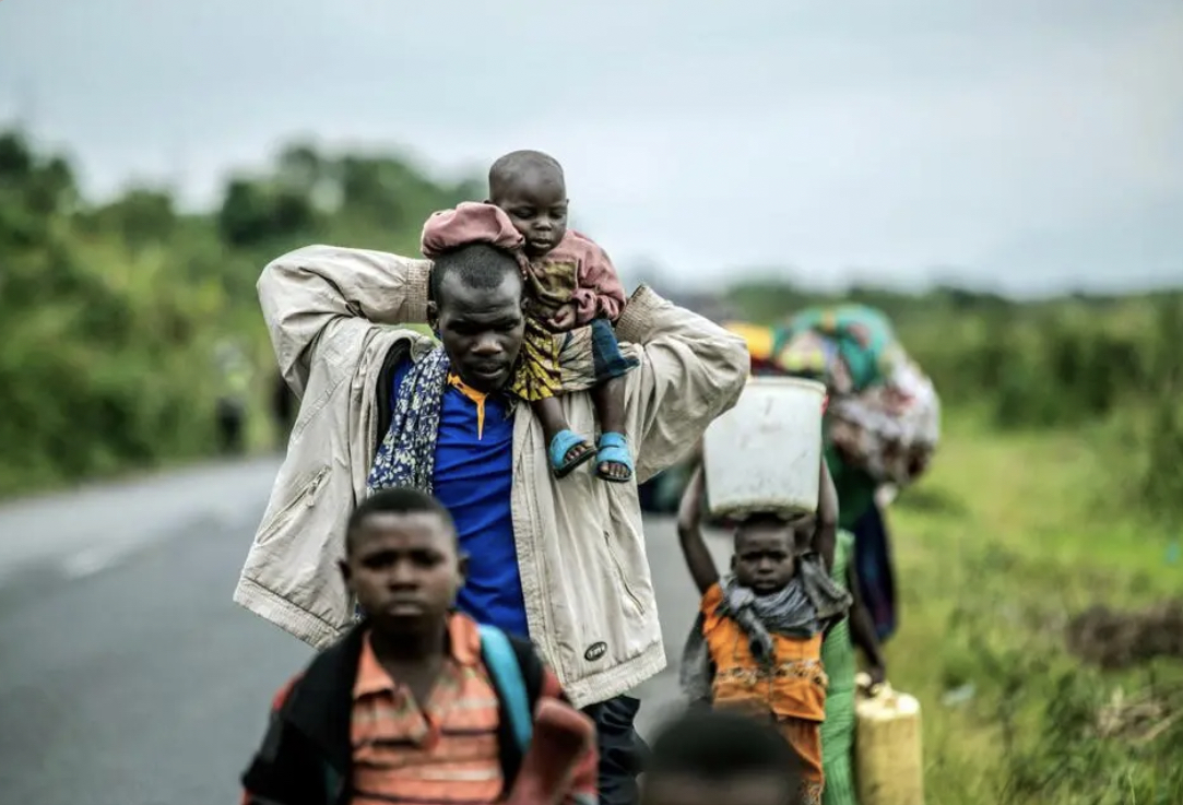 Cư dân chạy trốn cuộc giao tranh giữa phiến quân M23 và lực lượng Congo gần Kibumba, cách Goma khoảng 20 km (12 dặm) về phía Bắc, Cộng hòa Dân chủ Congo, thứ Bảy, ngày 29 tháng 10 năm 2022 (Ảnh: Moses Sawasawa/AP)