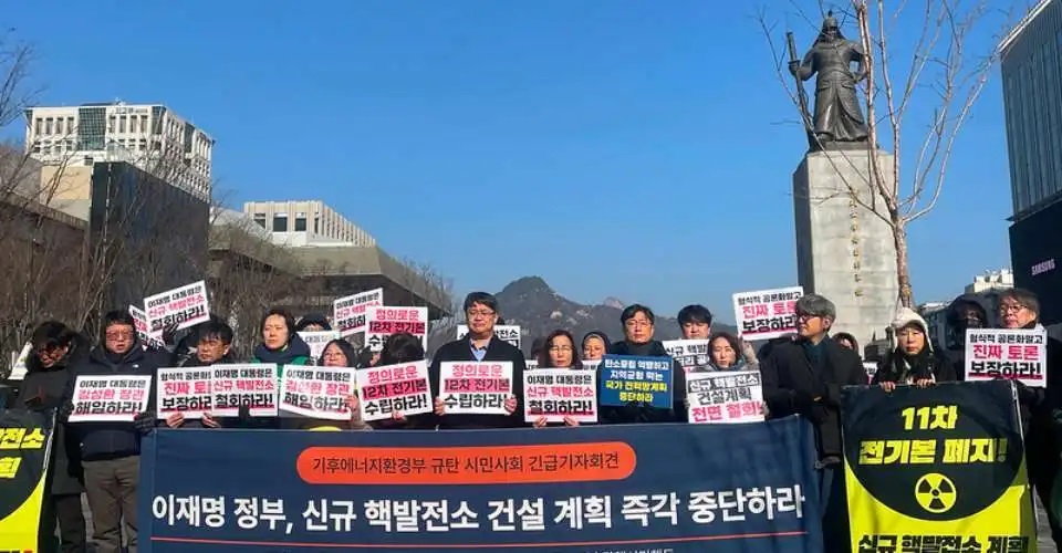 Trong cuộc họp báo vào ngày 27 tháng 1, Liên minh Hành động Công dân Hướng tới việc Loại bỏ Điện hạt nhân (Citizens’ Action for Nuclear Phase-out) — liên minh 43 tổ chức môi trường, vận động xã hội và tôn giáo — đã lên án kế hoạch xây dựng các nhà máy điện hạt nhân của chính phủ, theo một báo cáo của nhóm vận động chính sách mang tên ‘Đoàn kết nhân dân vì nền dân chủ tham quyết’.