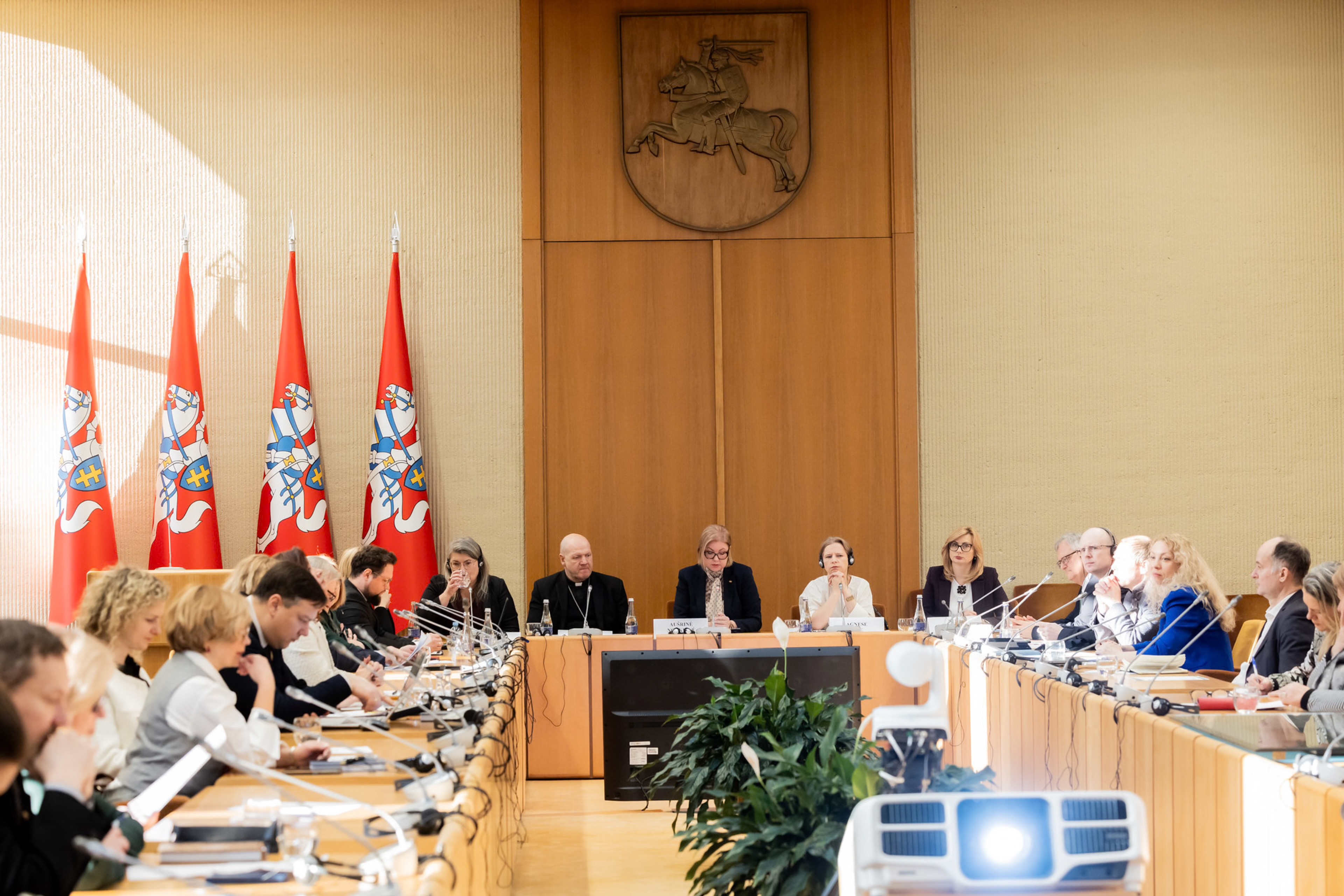 Các thành viên tham dự hội nghị về tỷ lệ sinh giảm ở châu Âu tại Quốc hội Lithuania vào thứ Ba, ngày 14 tháng 1 năm 2026 (Nguồn: Quốc hội Lithuania/ Olga Posaškova)