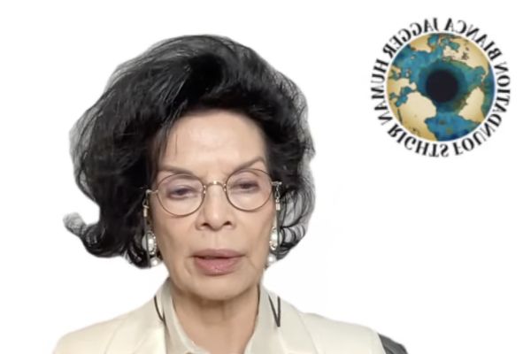 Bianca Jagger, một nhà hoạt động nhân quyền Công giáo, làm chứng trực tuyến trước Ủy ban Nhân quyền Tom Lantos (TLHRC) vào ngày 15 tháng 12 năm 2022 (Ủy ban Nhân quyền Tom Lantos/ Ảnh chụp màn hình)