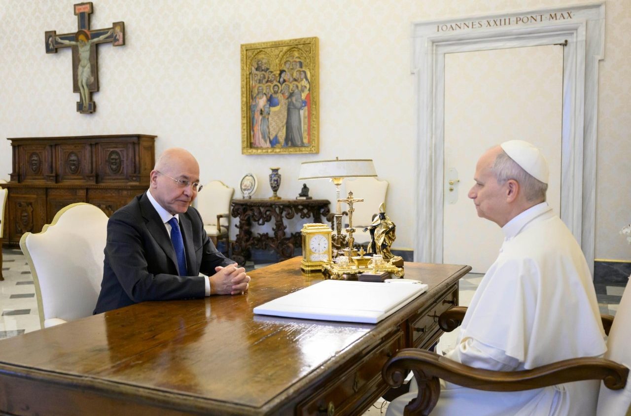 Đức Thánh Cha Lêô XIV tiếp kiến ông Barham Salih, Cao ủy Liên Hợp Quốc về Người tị nạn (Ảnh @Truền thông Vatican)
