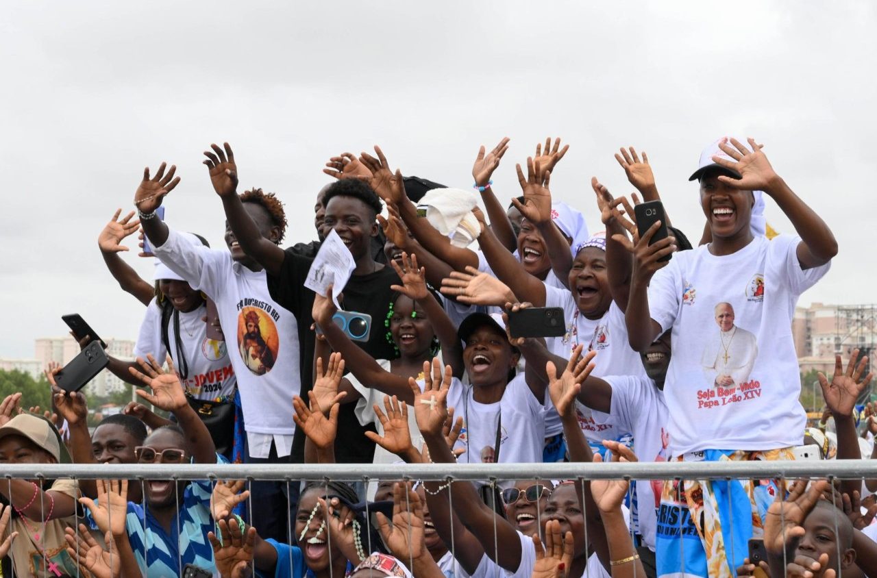 Đức Thánh Cha Lêô XIV chào đón giới trẻ tại Đền thánh Đức Mẹ Muxima ở Kimbaxe, Angola, vào ngày 19 tháng 4 năm 2026 (Ảnh: Patrick Leonard/ EWTN News)