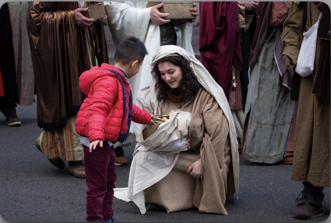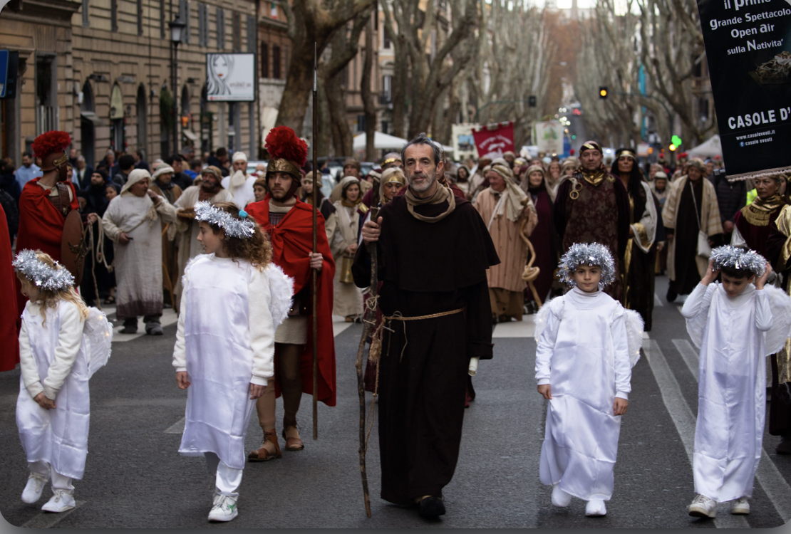 Sau đó, Thánh Phanxicô dẫn đầu đoàn diễu hành, bao gồm hai nhân vật trong trang phục Đức Maria và Thánh Giuse, khi họ diễn lại việc hai ông bà tìm kiếm một nơi để qua đêm tại Bethlehem dọc theo con phố.