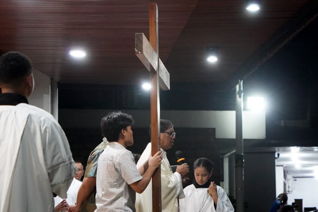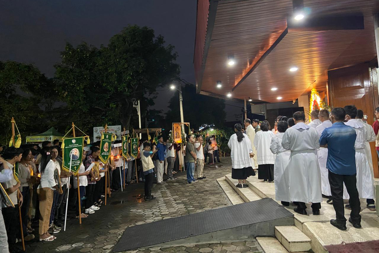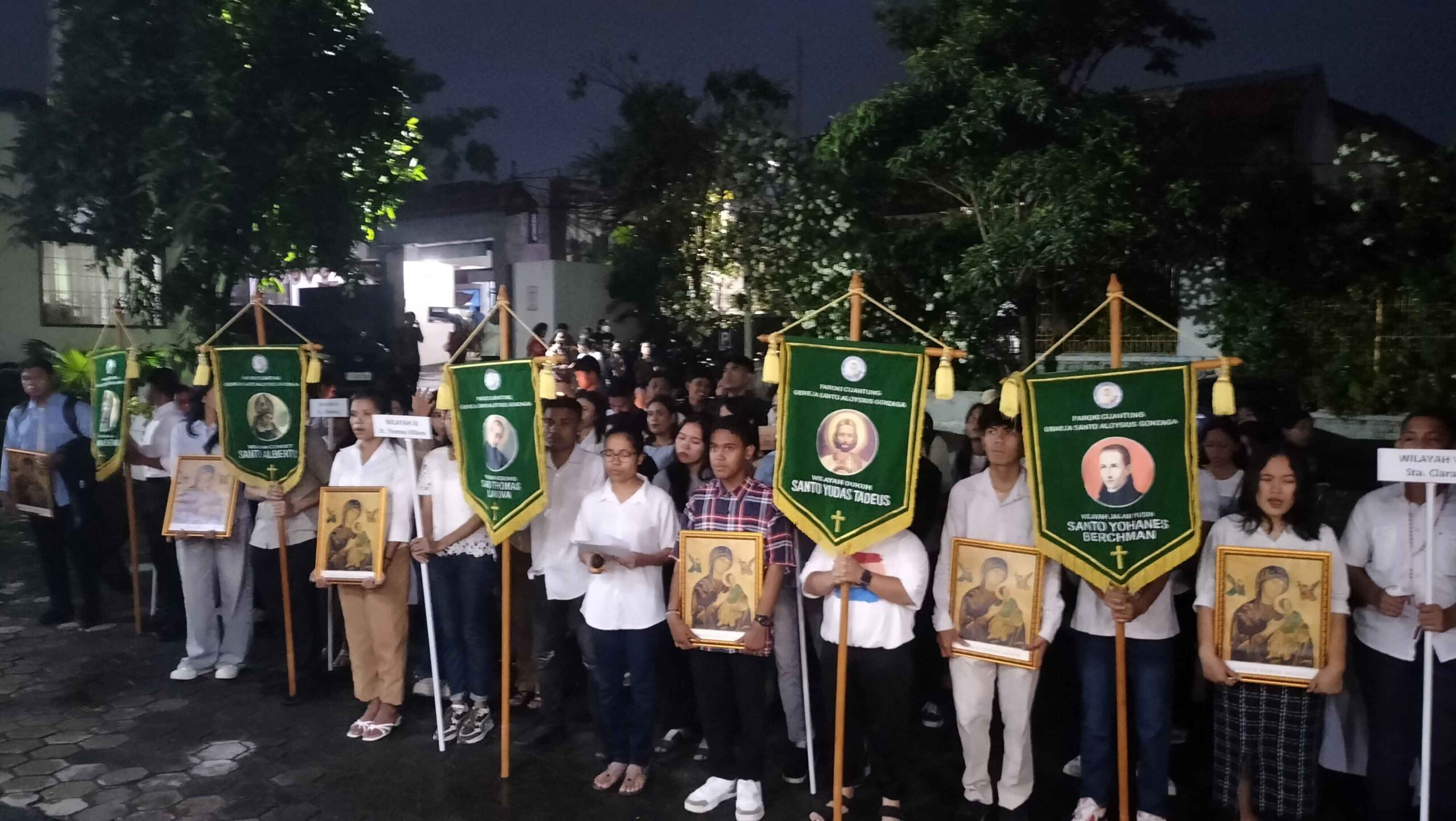 Vào buổi chiều ngày 31 tháng 10, bầu trời Cijantung u ám và nhiều mây. Gió mát thổi đến, mang theo hương mưa thoảng trong không khí. Thế nhưng, tại Giáo xứ Thánh Aloysius Gonzaga, bầu khí lại rộn ràng và tràn đầy hân hoan. Từ xa đã có thể nhìn thấy những lá cờ rực rỡ của 13 Giáo khu trong Giáo xứ, tất cả đều sẵn sàng tham dự Thánh lễ bế mạc Tháng Mân Côi.