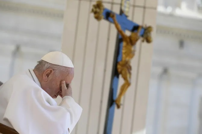Đức Thánh Cha Phanxicô thinh lặng cầu nguyện trong buổi tiếp kiến chung tại Quảng trường Thánh Phêrô hôm thứ Tư, ngày 26 tháng 4 (Ảnh: Truyền thông Vatican)