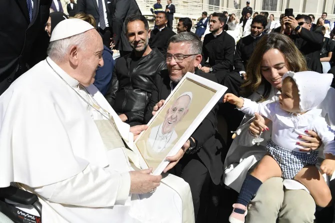 Đức Thánh Cha Phanxicô chia sẻ trong buổi tiếp kiến chung tại Quảng trường Thánh Phêrô hôm thứ Tư, ngày 26 tháng 4 (Ảnh: Daniel Ibanez/ CNA)