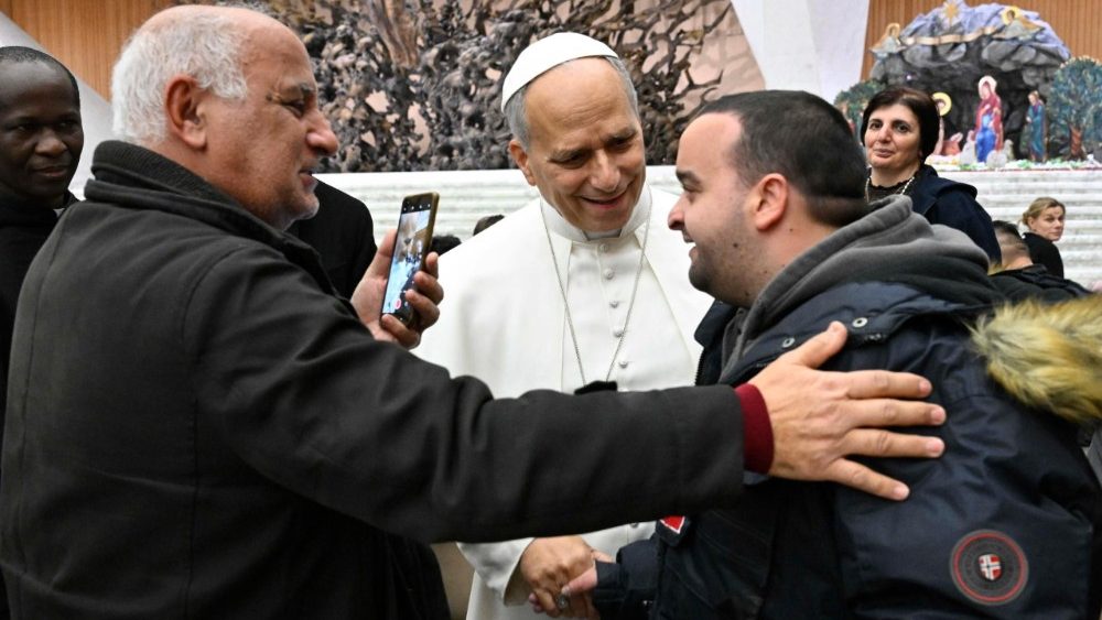Trong một cuộc gặp gỡ “ngắn gọn, thân mật hơn một chút” bên trong Đại thính đường Phaolô VI, Đức Thánh Cha Lêô XIV đa chào thăm những người mắc những bệnh tật và khuyết tật khác nhau, ban phép lành đặc biệt và cầu chúc “niềm vui Giáng sinh sẽ đồng hành” cùng với họ, gia đình và những người thân yêu của họ.