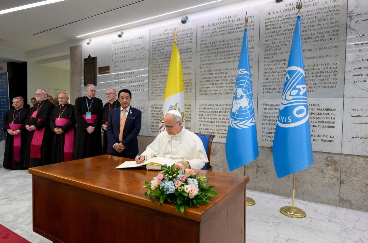 Đức Thánh Cha Lêô XIV đã đến thăm trụ sở của Tổ chức Lương thực và Nông nghiệp Liên Hiệp Quốc (FAO) tại Rôma nhân Ngày Lương thực Thế giới và kỷ niệm 80 năm thành lập tổ chức này. Trong bài diễn văn, ngài tái khẳng định sự gần gũi của Tòa Thánh với cơ quan này và đồng thời kêu gọi một cam kết toàn cầu chung nhằm chấm dứt nạn đói và suy dinh dưỡng.