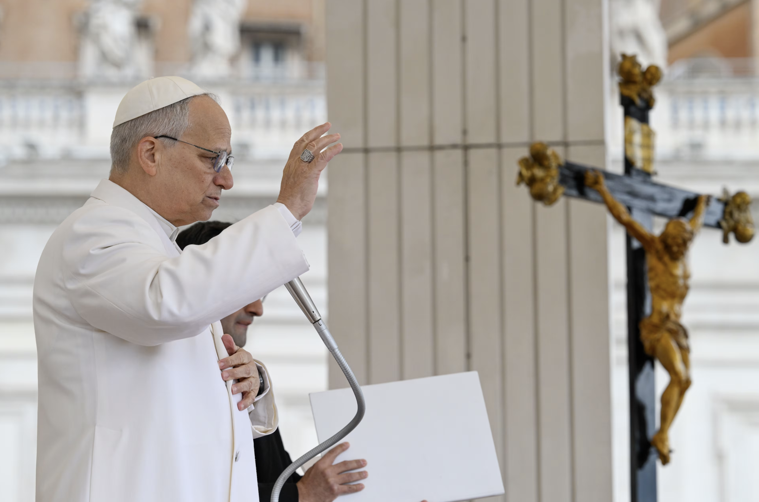 Đức Thánh Cha Lêô XIV ban phép lành trong buổi tiếp kiến chung tại Quảng trường Thánh Phêrô vào ngày 1 tháng 4 năm 2026 (Ảnh: Truyền thông Vatican)