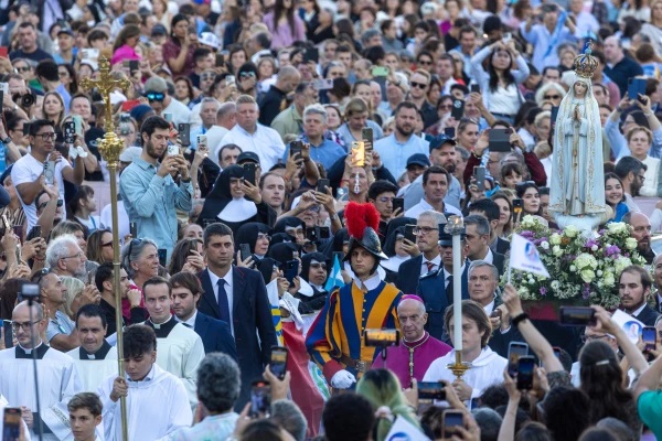 Trước tượng Đức Mẹ Fatima, được rước từ Bồ Đào Nha đến Rôma nhân dịp Năm Thánh Linh đạo Thánh Mẫu diễn ra trong hai ngày 11–12 tháng 10, Đức Thánh Cha đã phó thác các tín hữu cho Thánh Mẫu Thiên Chúa, xin Mẹ hướng dẫn Giáo hội trong “cuộc hành trình hy vọng”.