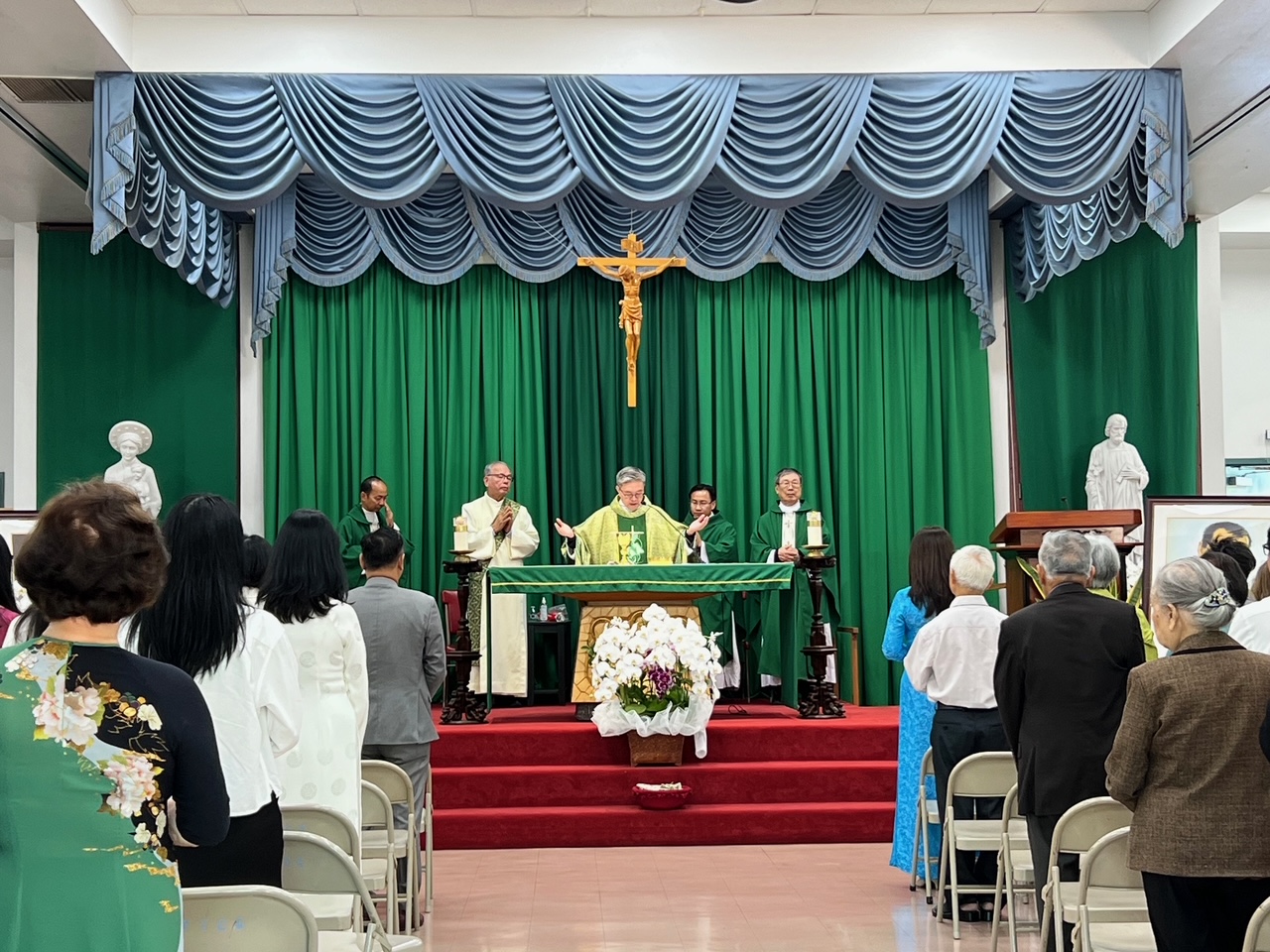 Đặc biệt hôm nay có hai cha Phê-rô Nguyễn Văn Khải (Rô-ma), cha Giuse Nguyễn Bá Quốc Linh (Washington D.C.) và một vài vị khách từ những nơi khác đến tham dự buổi lễ hôm nay.