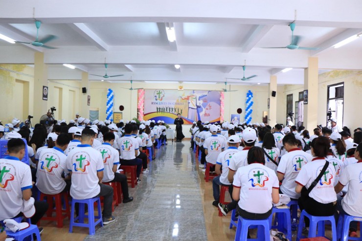 Chủ đề của cuộc hội ngộ lần này là: RYM (Redemtorist Youth Ministry) LIVE IN CHRIST – GIỚI TRẺ THỪA SAI CHÚA CỨU THẾ SỐNG TRONG ĐỨC KI-TÔ. Các bạn Giới trẻ ba miên tụ họp lần này khoảng 400 bạn với sự hiện diện đông nhất của Giới trẻ miền Bắc hơn 200 bạn trẻ.