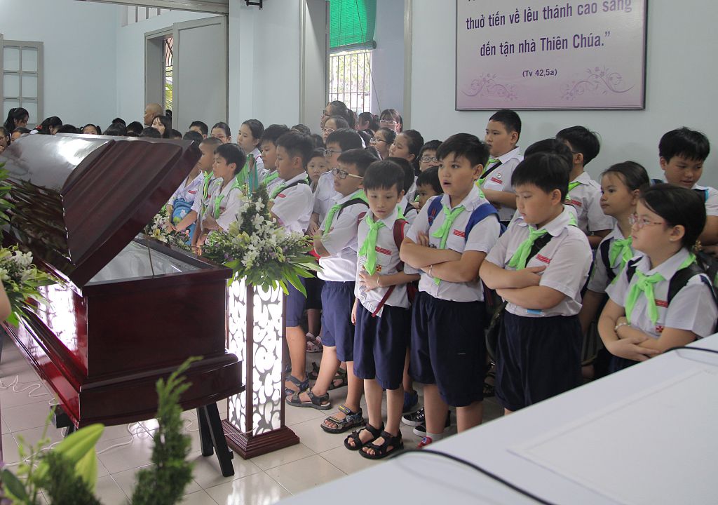 Cha linh hướng cùng Xứ Đoàn thiếu nhi Thánh Thể Chúa Kitô Vua viếng và cầu nguyện cho linh hồn Thầy Gioakim